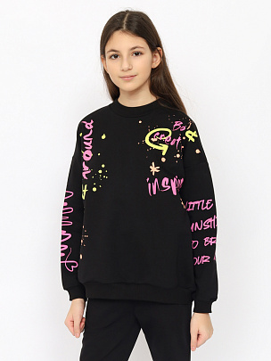 Воротник и манжеты из материала с эластаном.Разрезы в боковых швах.Принт по переду "Гравитация"