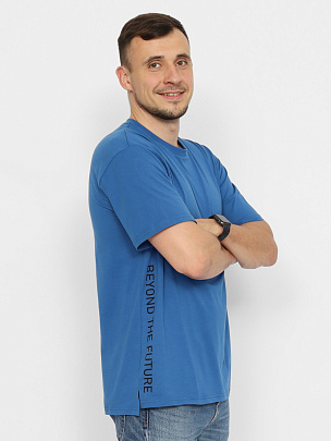 Футболка прямого силуэта с короткими рукавами. Горловина круглая, обработана притачной бейкой из рибаны с лайкрой. Перед футболки декорирован блестящим принтом, имитирующим пайетки.